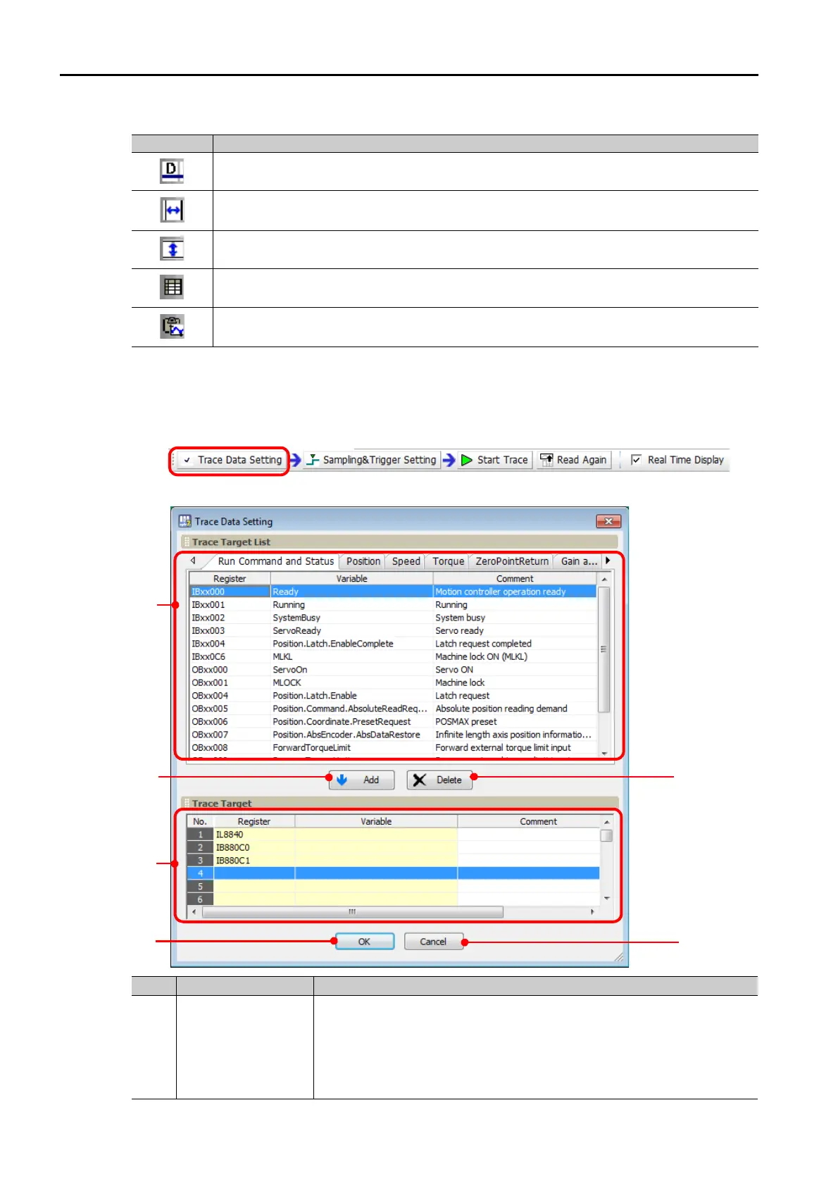 Right-click in the Trace Target List to display the pop-up menu to select or