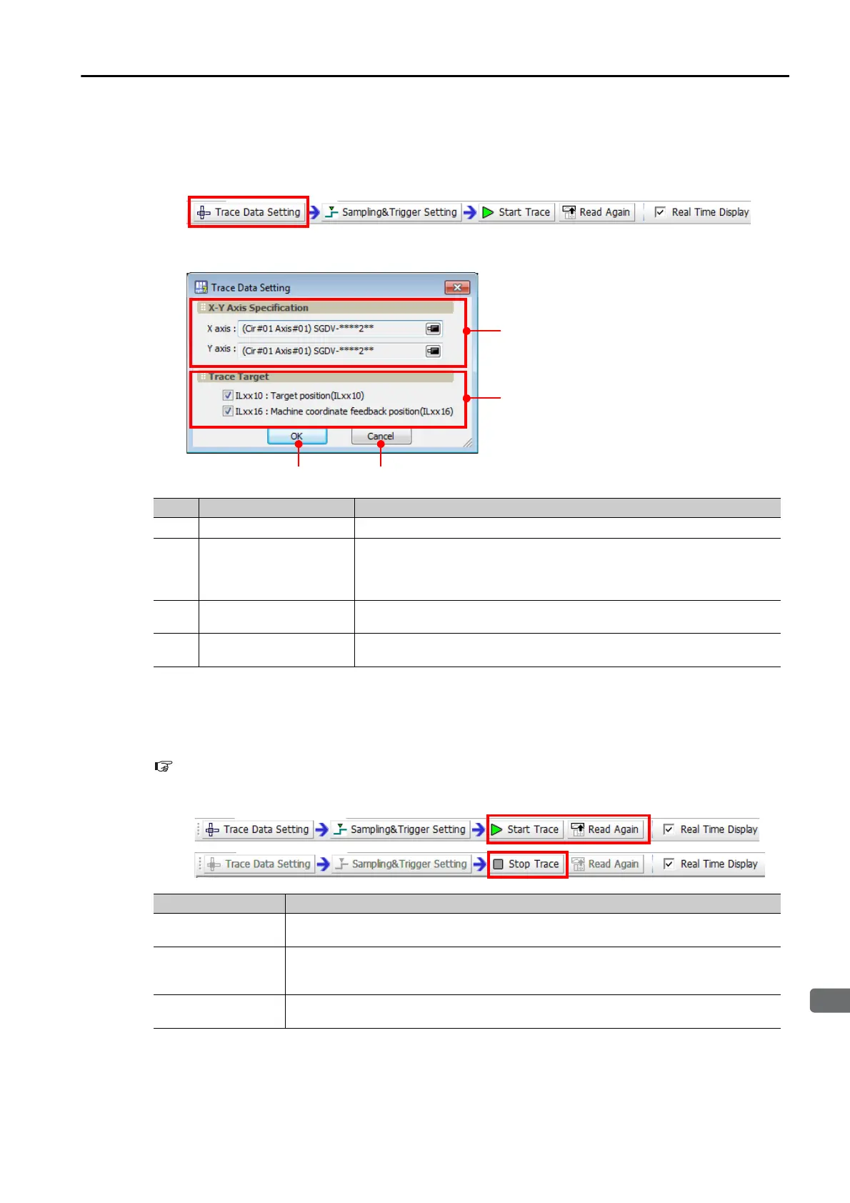The OK Button sets the X-Y axes and the trace targets, and enables the