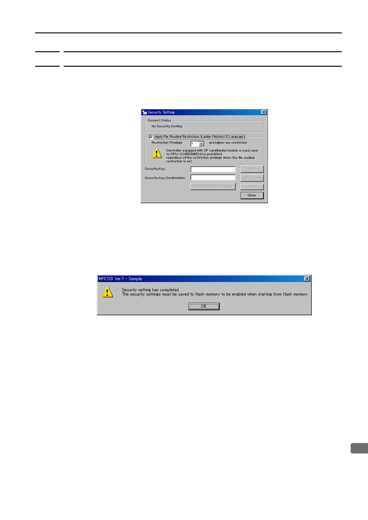 With the Machine Controller online, select Online − Security Setting from the menu bar.