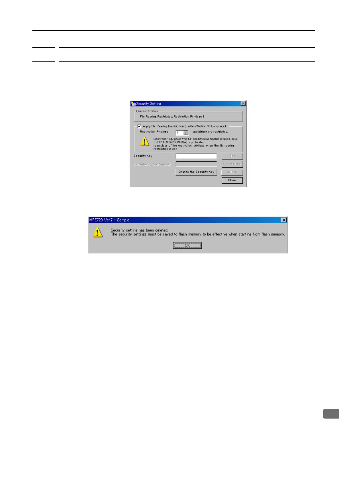 With the Machine Controller online, select Online − Security Setting from the menu bar.