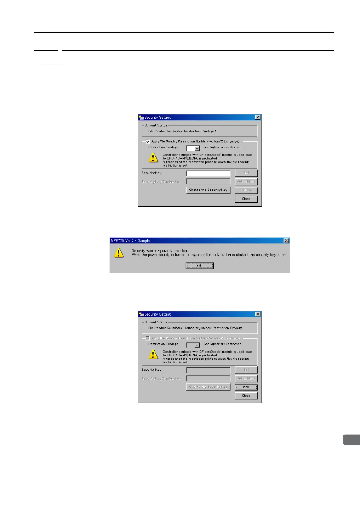 Use the following procedure to temporarily unlock the security that was set for the Machine
