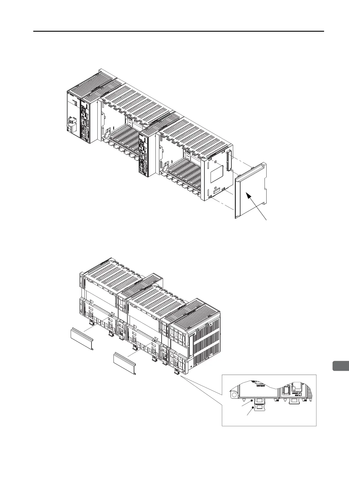 In the same way as when mounting to DIN rail, use the rail locks to secure the Rack