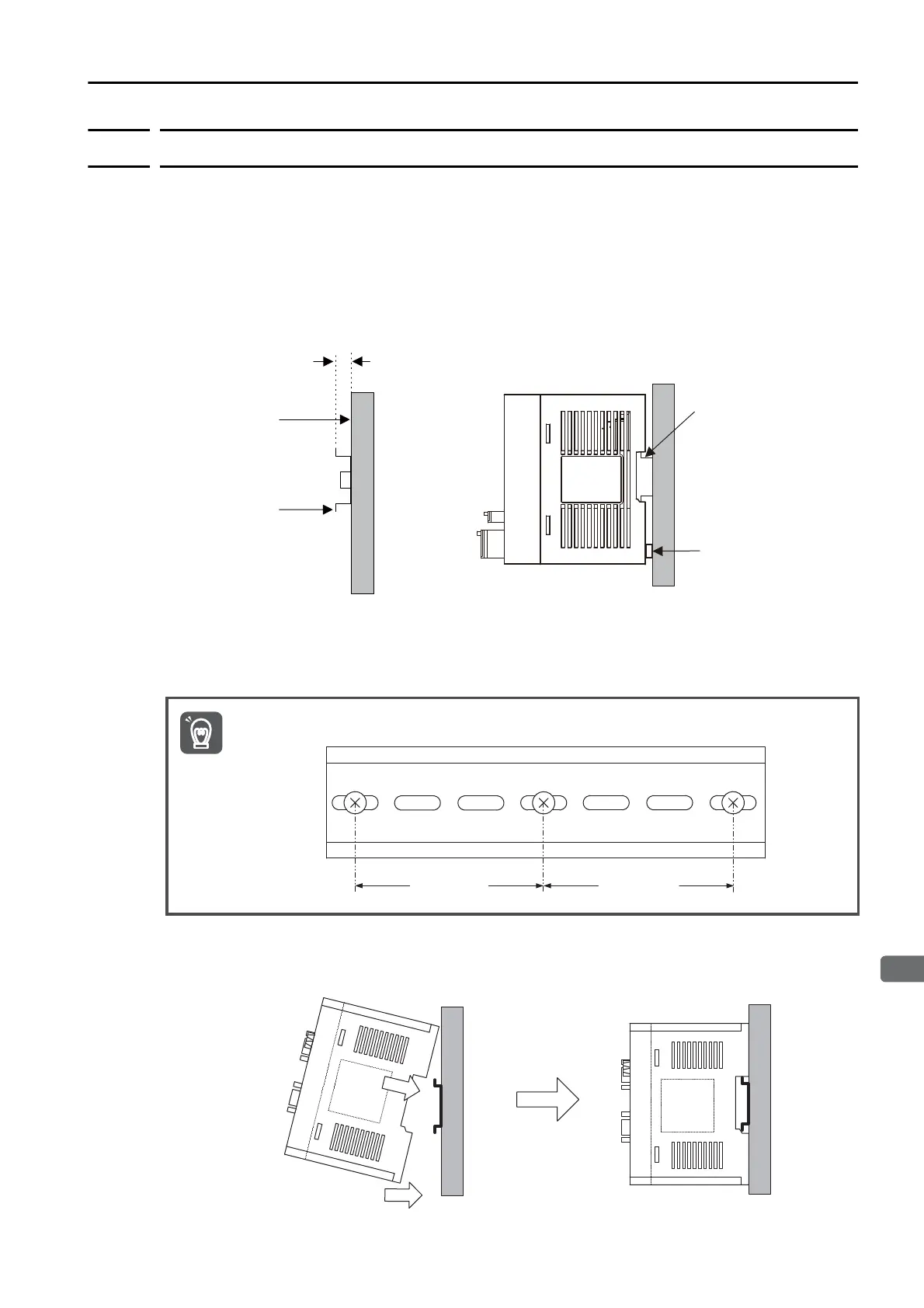 Secure the DIN rail at a pitch of 150 mm or less, as shown in the following figure.