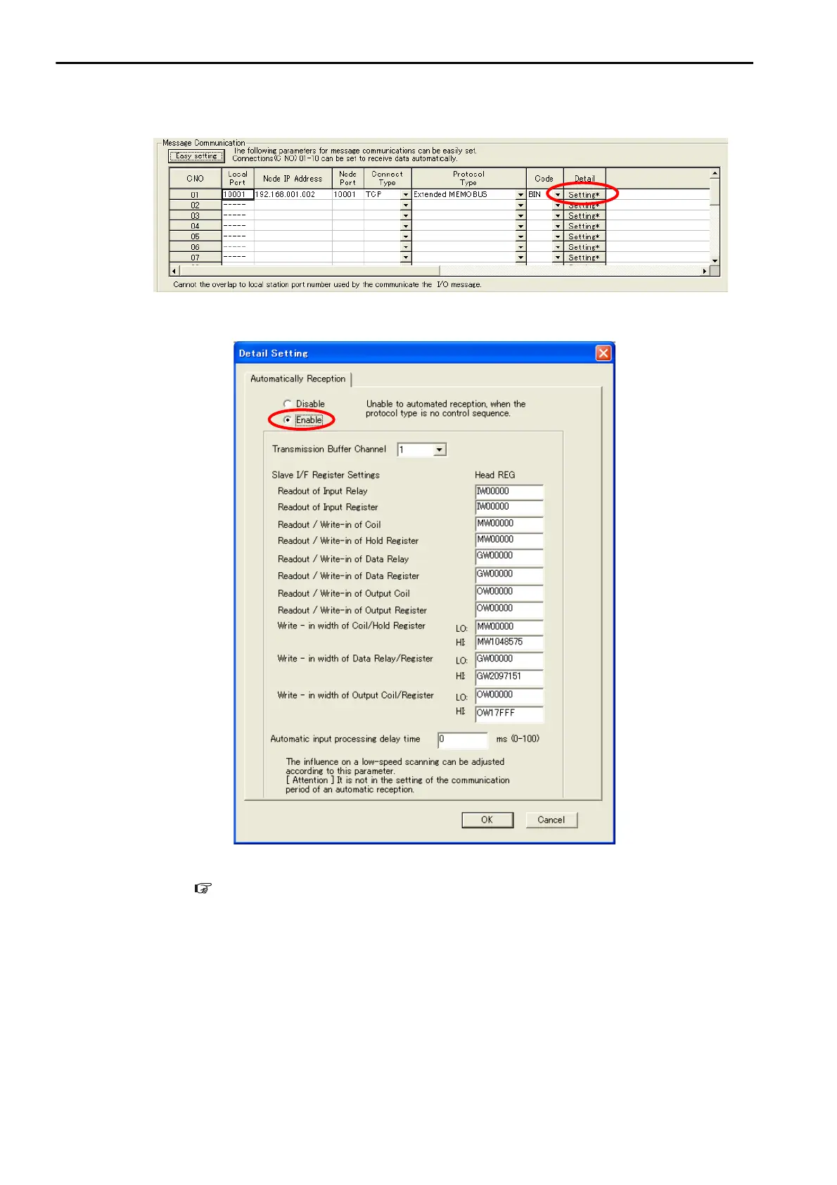 2. Disable automatic reception for any connection for which message functions (MSG-SNDE and MSG-