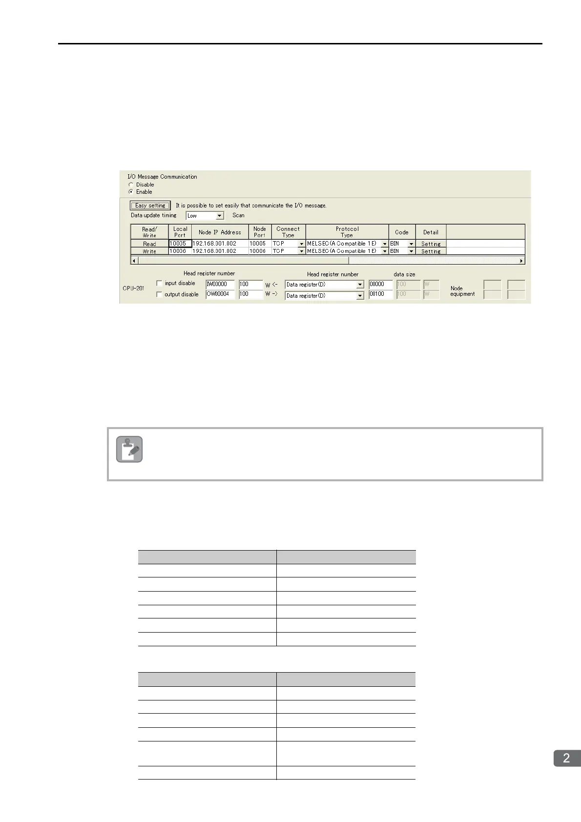 set in the Message Communication Easy Setting Dialog Box.
