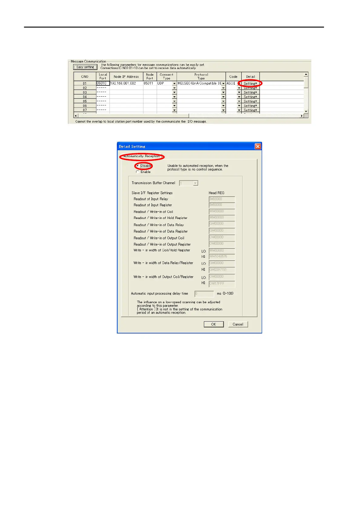 8. Click the Disable Option on the Automatically Reception Tab Page.
