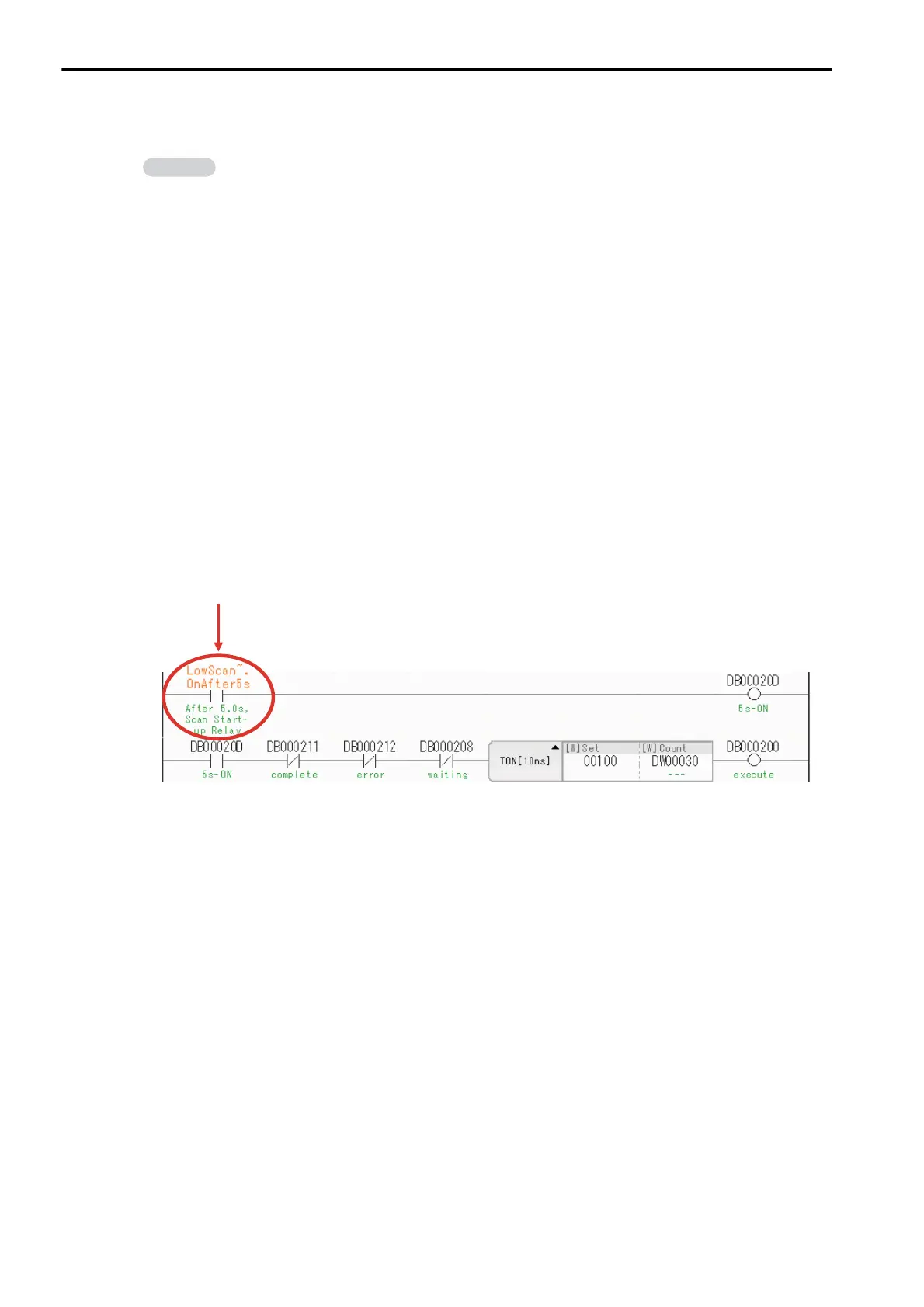 The ladder program example is designed to turn ON the Execute Bit (DB000200) in the message send func-
