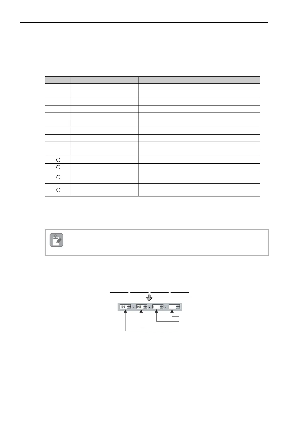 Fields 1 to 3 can be set to 0 to 255. Field 4 can be set to 1 to 254. When a subnet mask is not being used, enter