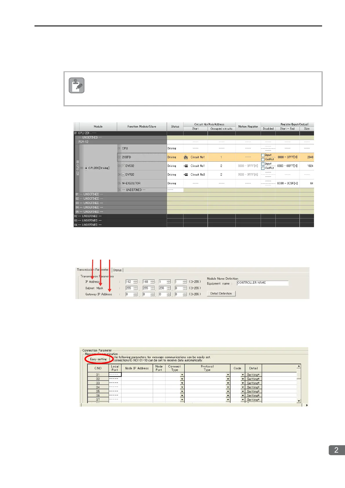 If the communications parameters (IP address and subnet mask) have already been set, skip to step 3.