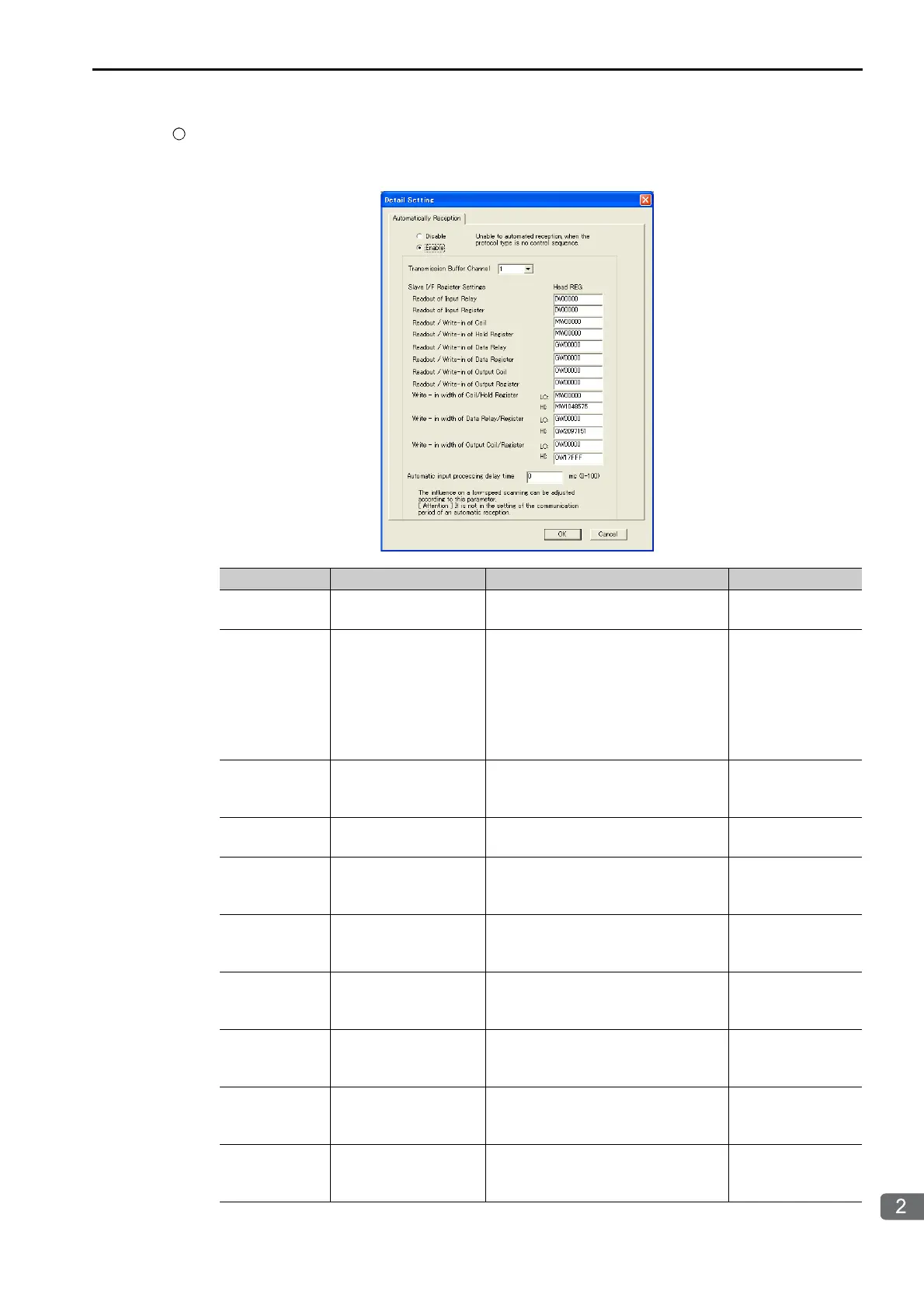 This button displays the Detail Setting Dialog Box to set the automatic reception settings. If the FINS