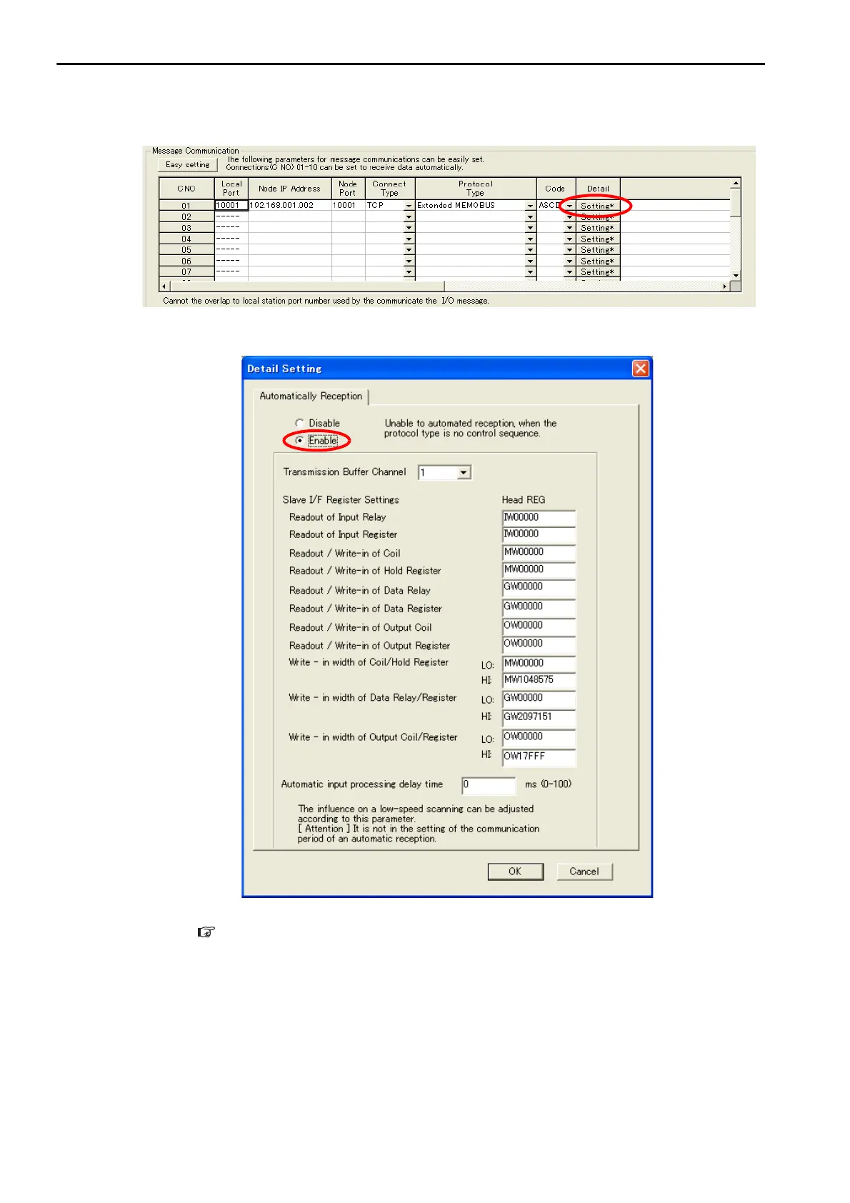 2. Disable automatic reception for any connection for which message functions (MSG-SNDE and MSG-