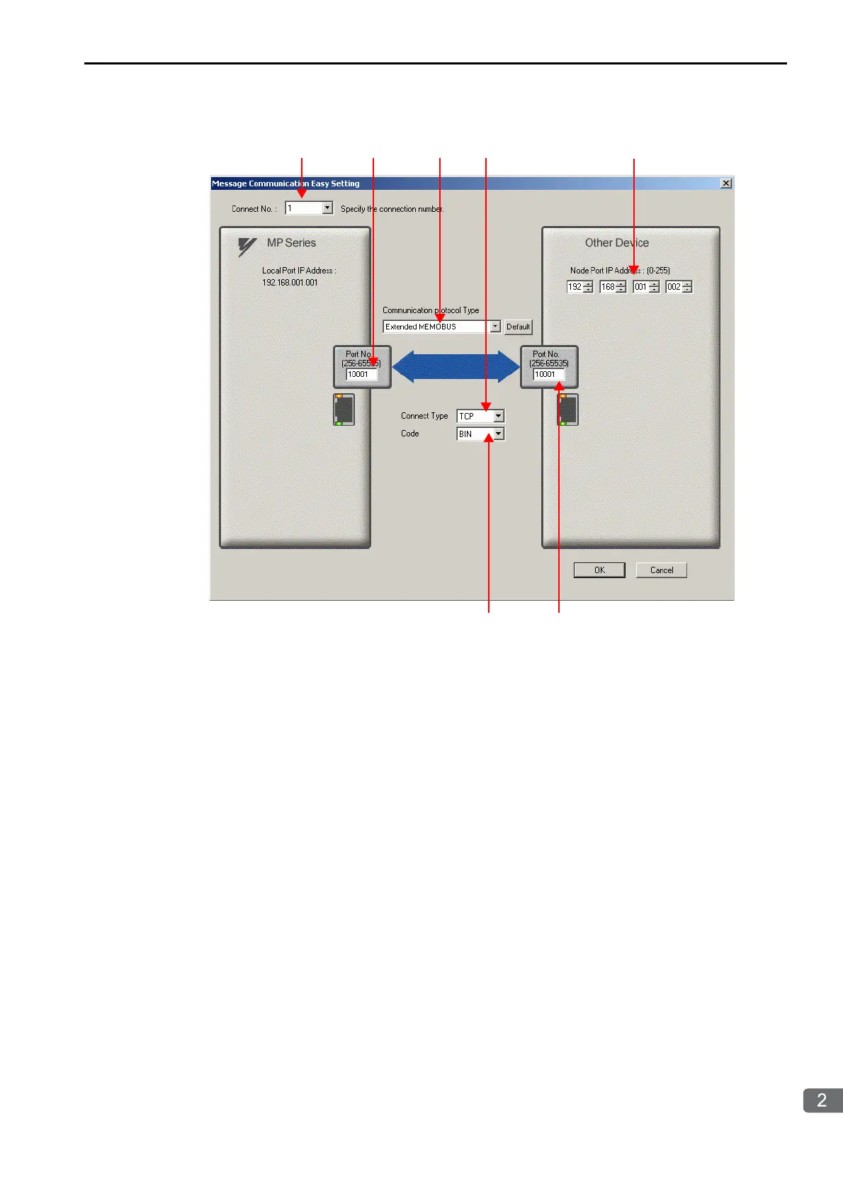 Note: If parameters have already been set for the same connection number and you click the Yes Button in the