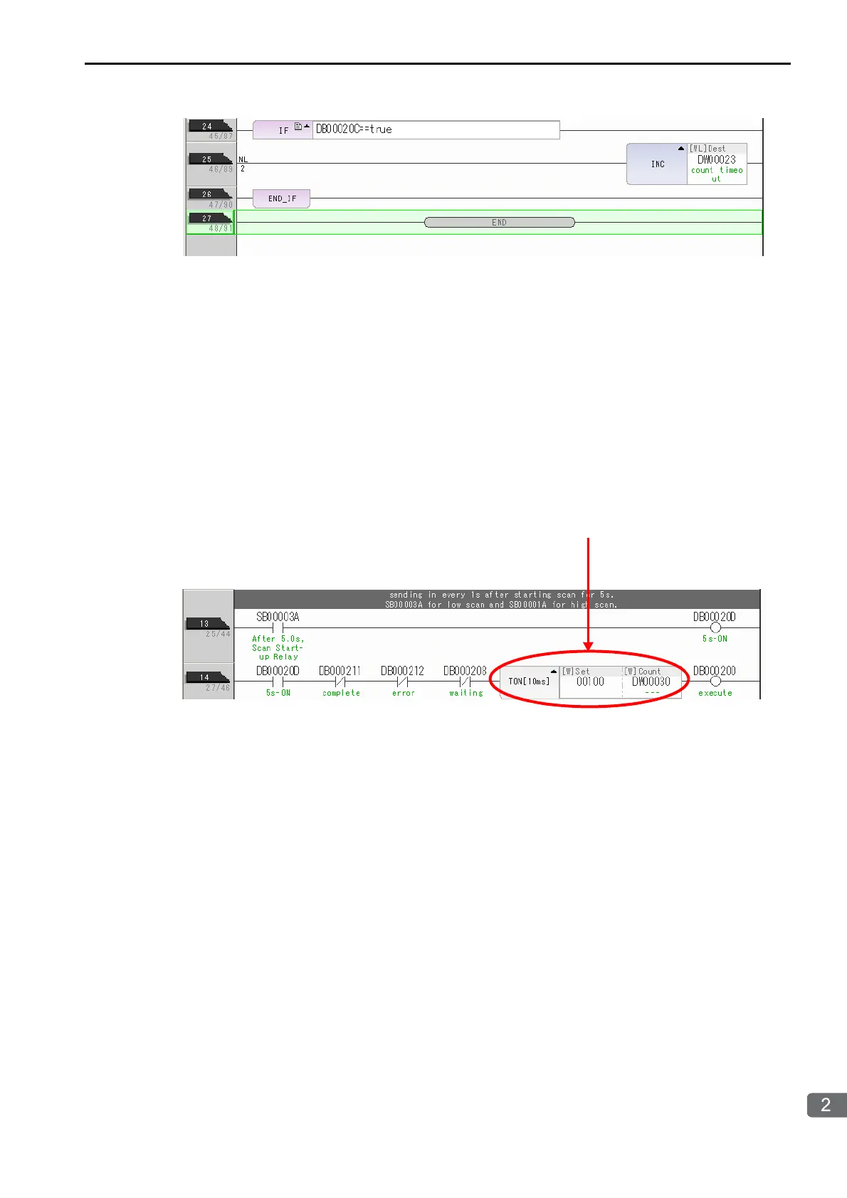 2. Turn ON the Execute Bit (e.g., DB000200) for the MSG-SND function in the MP2300 to start