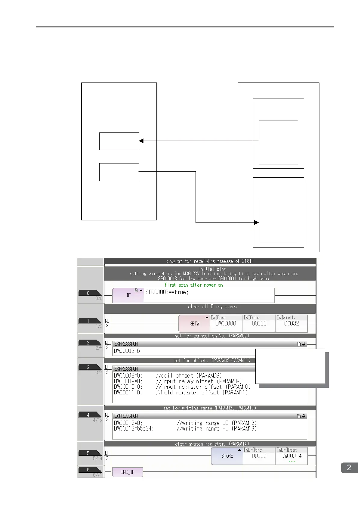 This ladder program example is for receiving the read request. Ladder programming for receiving the write