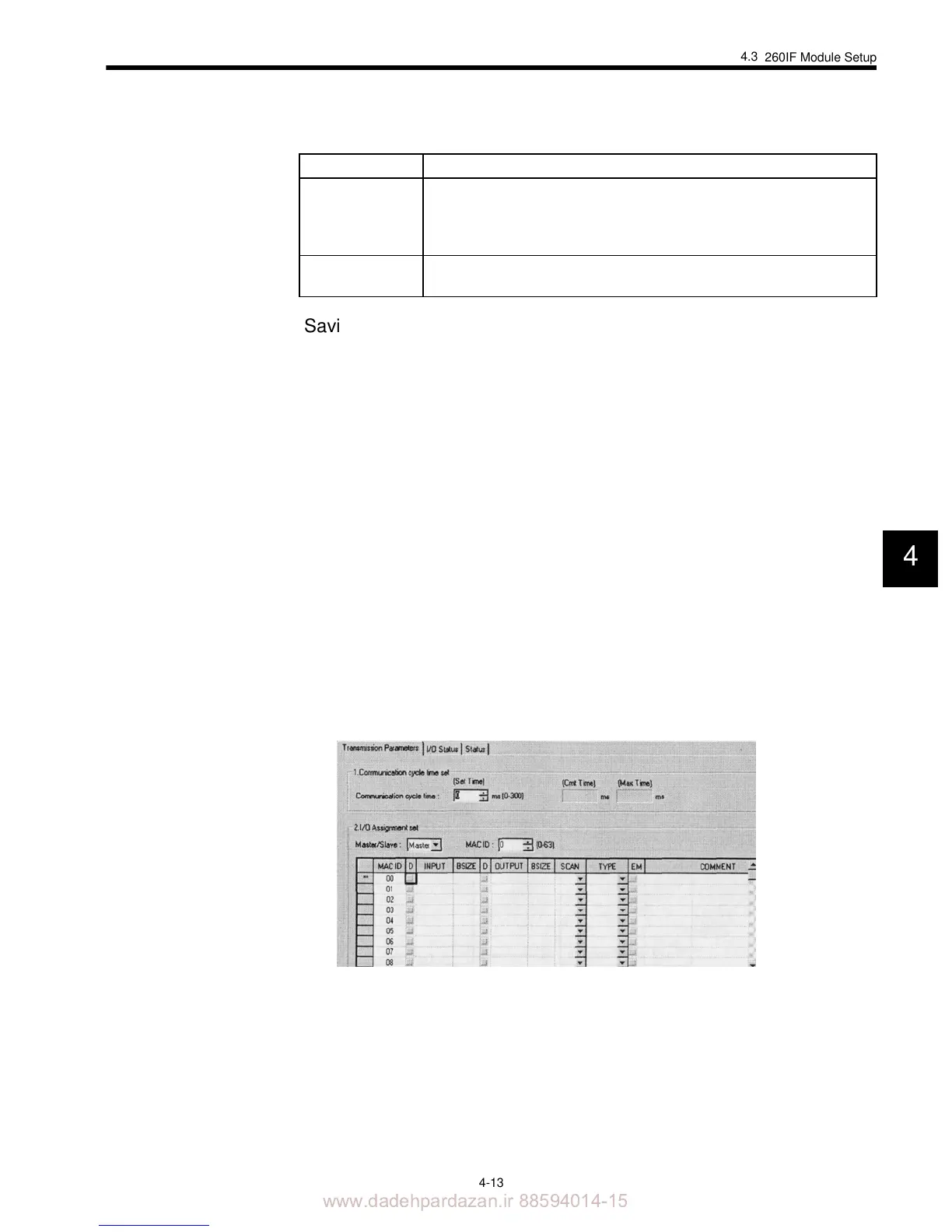 Enter the communications cycle time calculated in 4.2 Calculating Communications