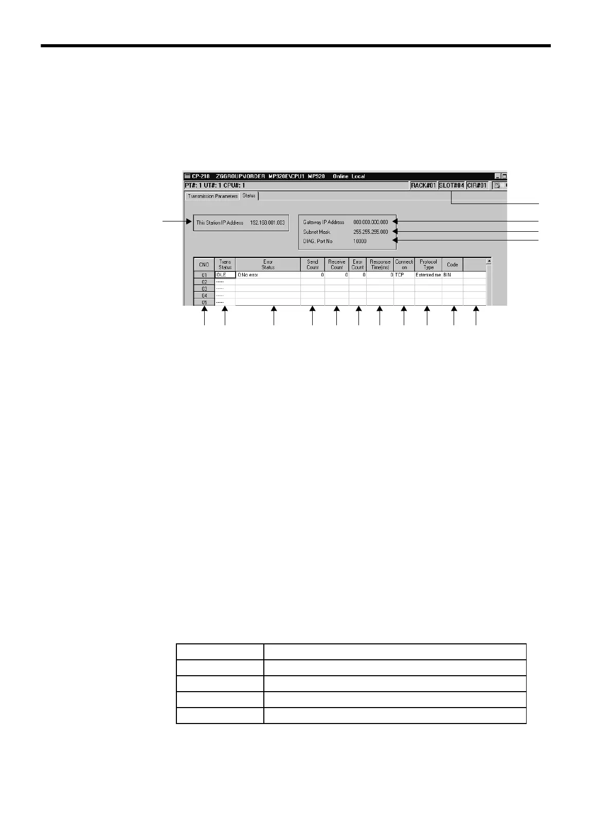 Displays the subnet mask set in the Transmission Parameters Tab.