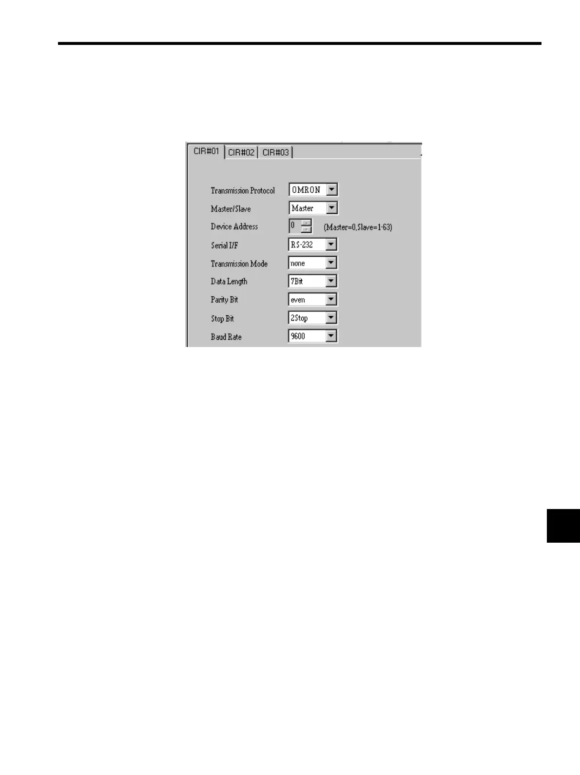 For the SYSMAC PLC settings, use a Programming Console to write to the PC Setup (DM