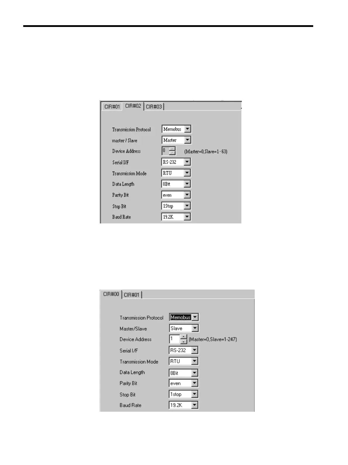 The following figure shows the Slave settings for the MP930 standard serial port (Port 1).