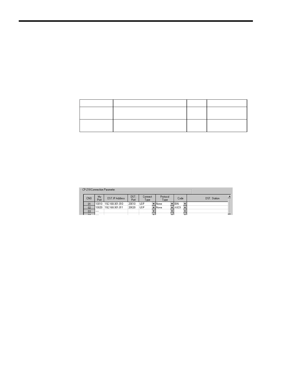 When using the Through Mode, specify “None” in the protocol type column in the Connec-