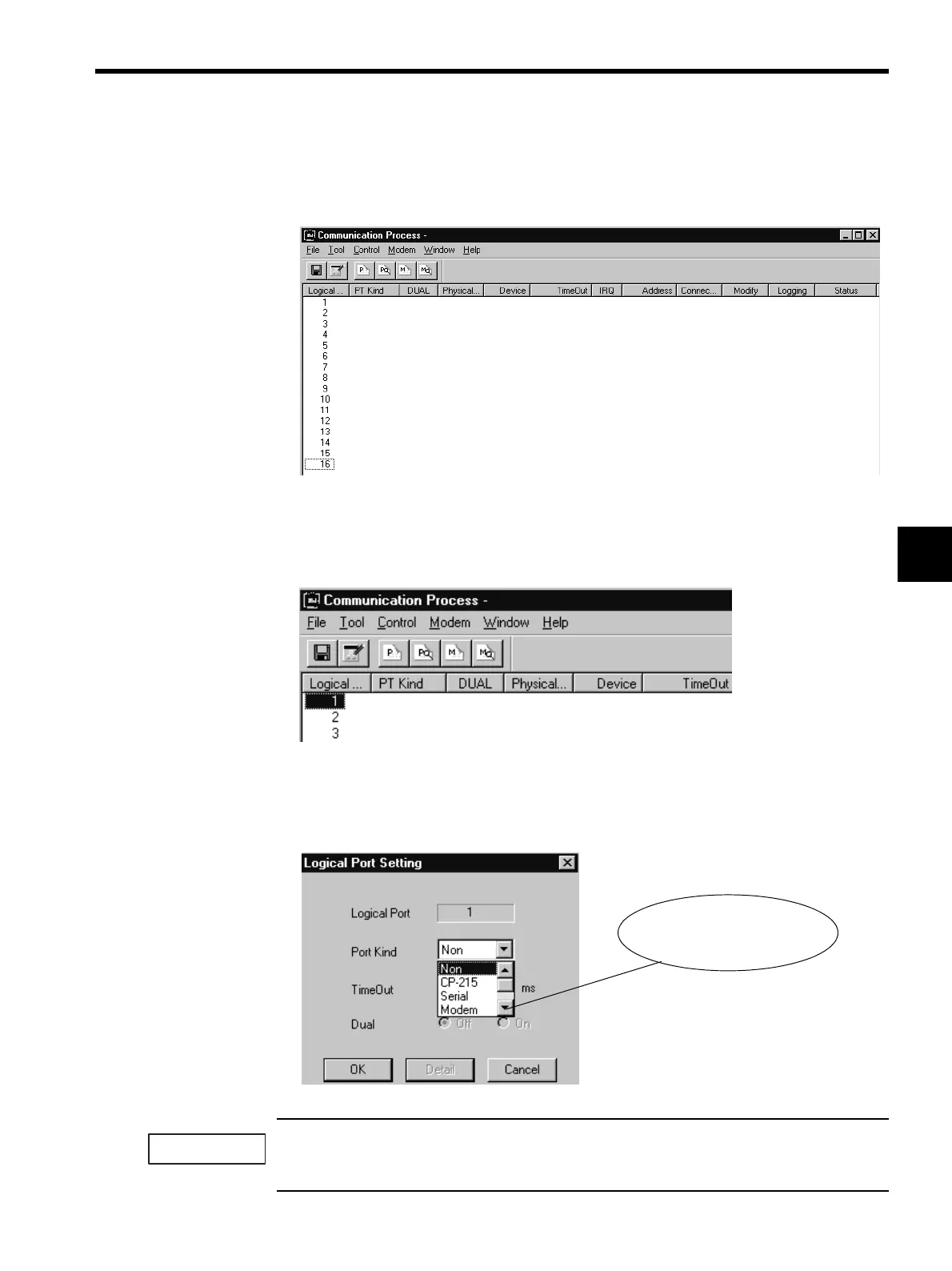 Do not set the logical port as a communications device (such as a CP-215) that is not installed in the