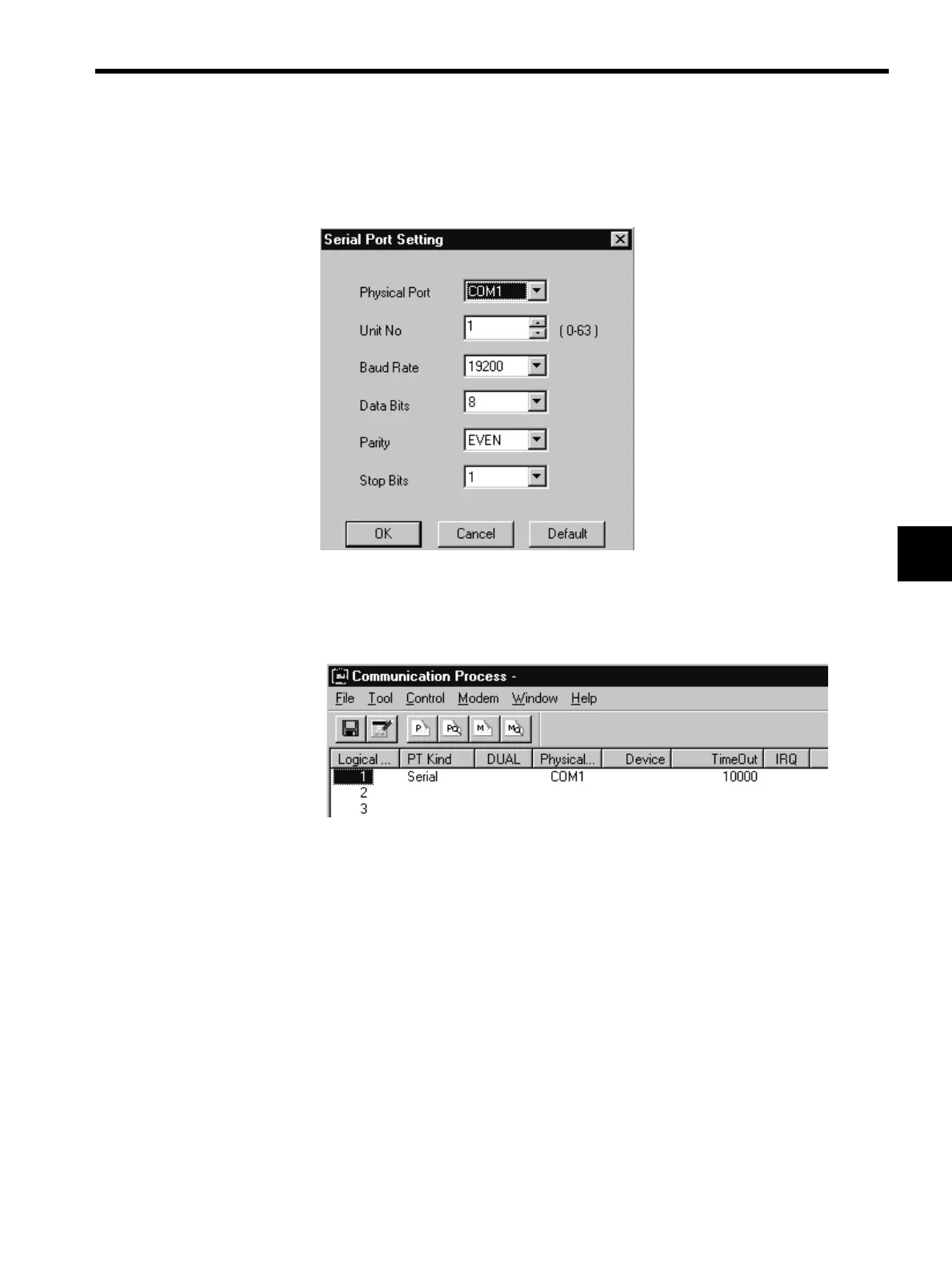port parameters and click OK. Normally, the following default values will be displayed.