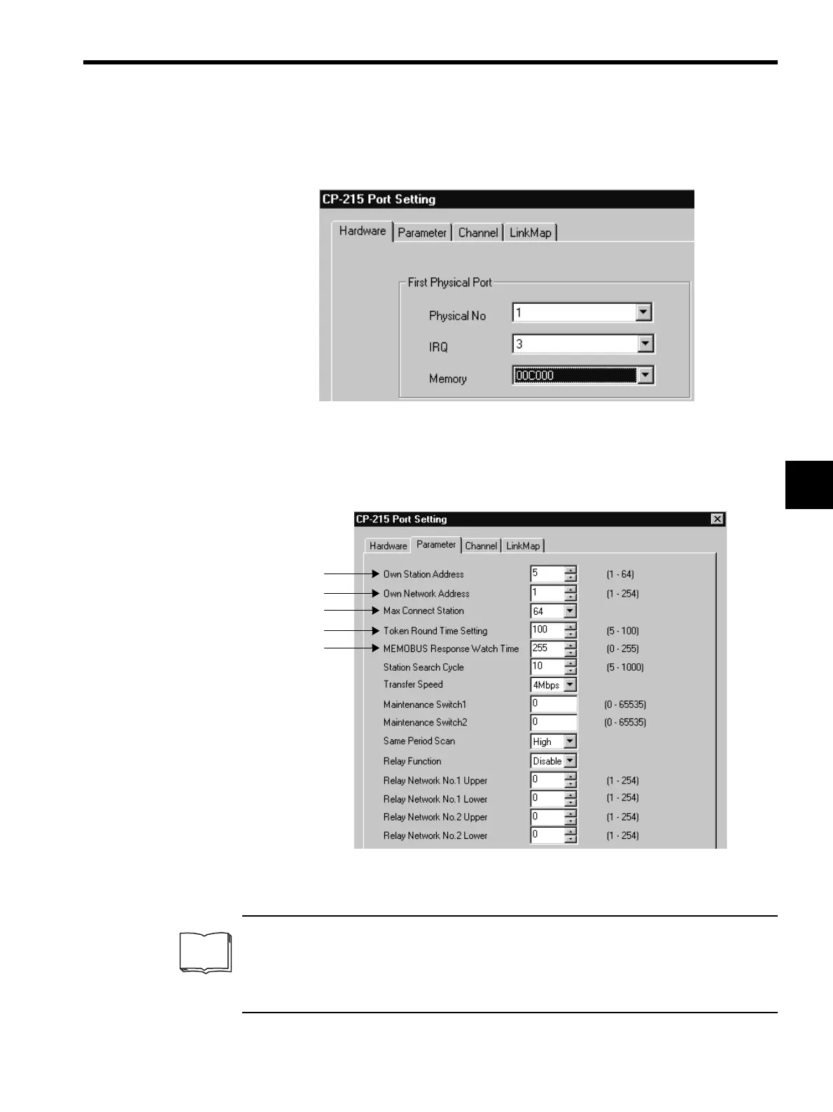 Set the CP-215 transmission parameters. Set the first five parameters: from Own Sta-