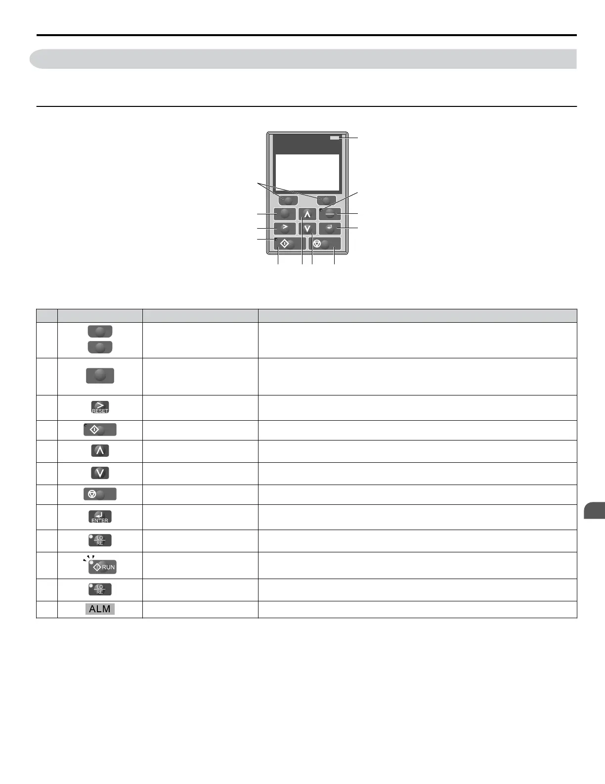 10 RUN Light Lit while the drive is operating the motor. Refer to page 111 for details.