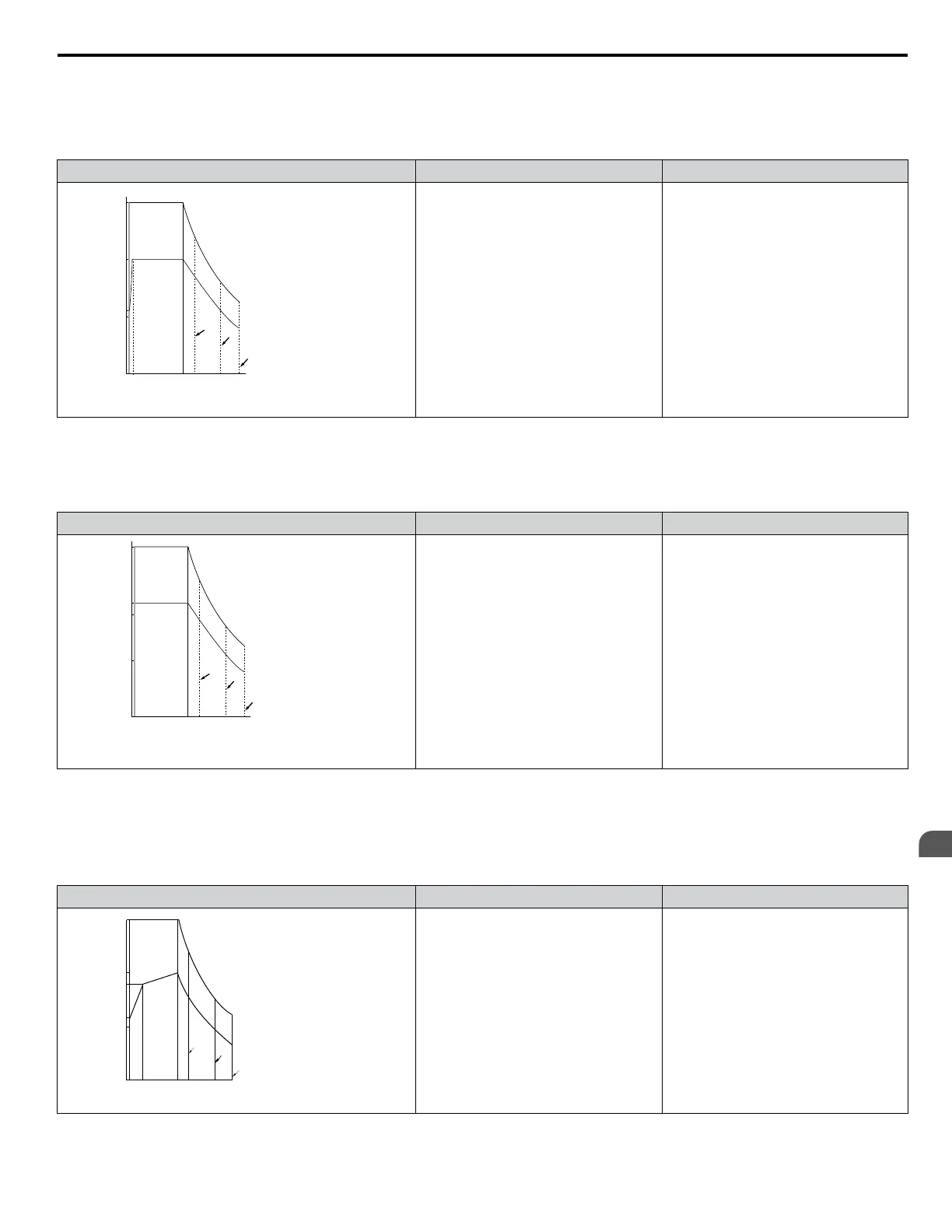 Because the motor is self-cooled, the overload tolerance drops when the motor speed is lowered. The drive appropriately