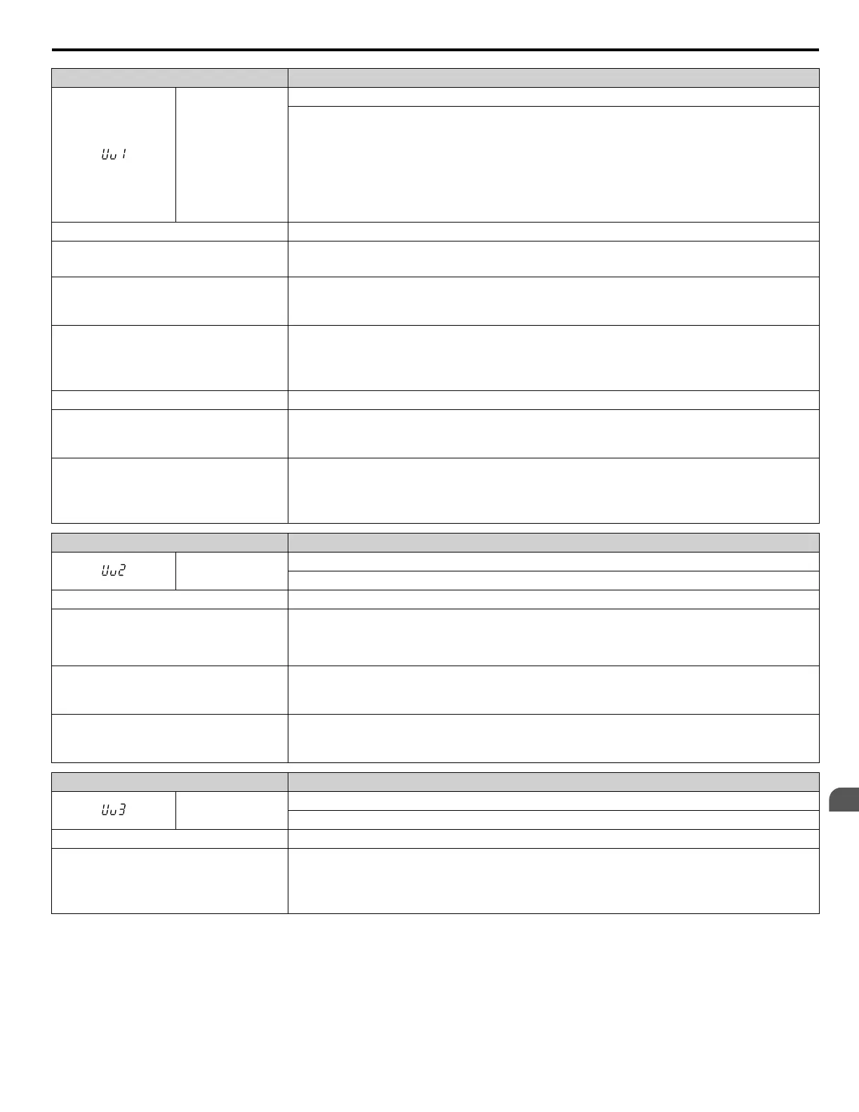 • Voltage in the DC bus fell below the undervoltage detection level (L2-05).