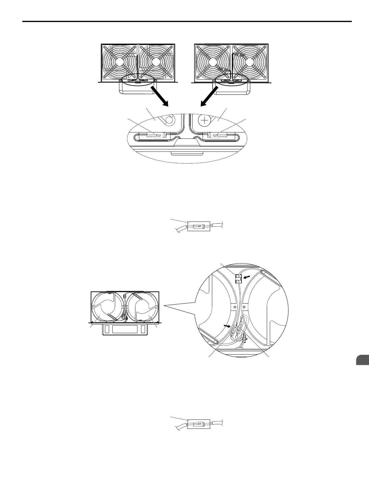 Insert the connector for fan B2 and guide the lead wire for fan B2 so the cable hook holds it in place.