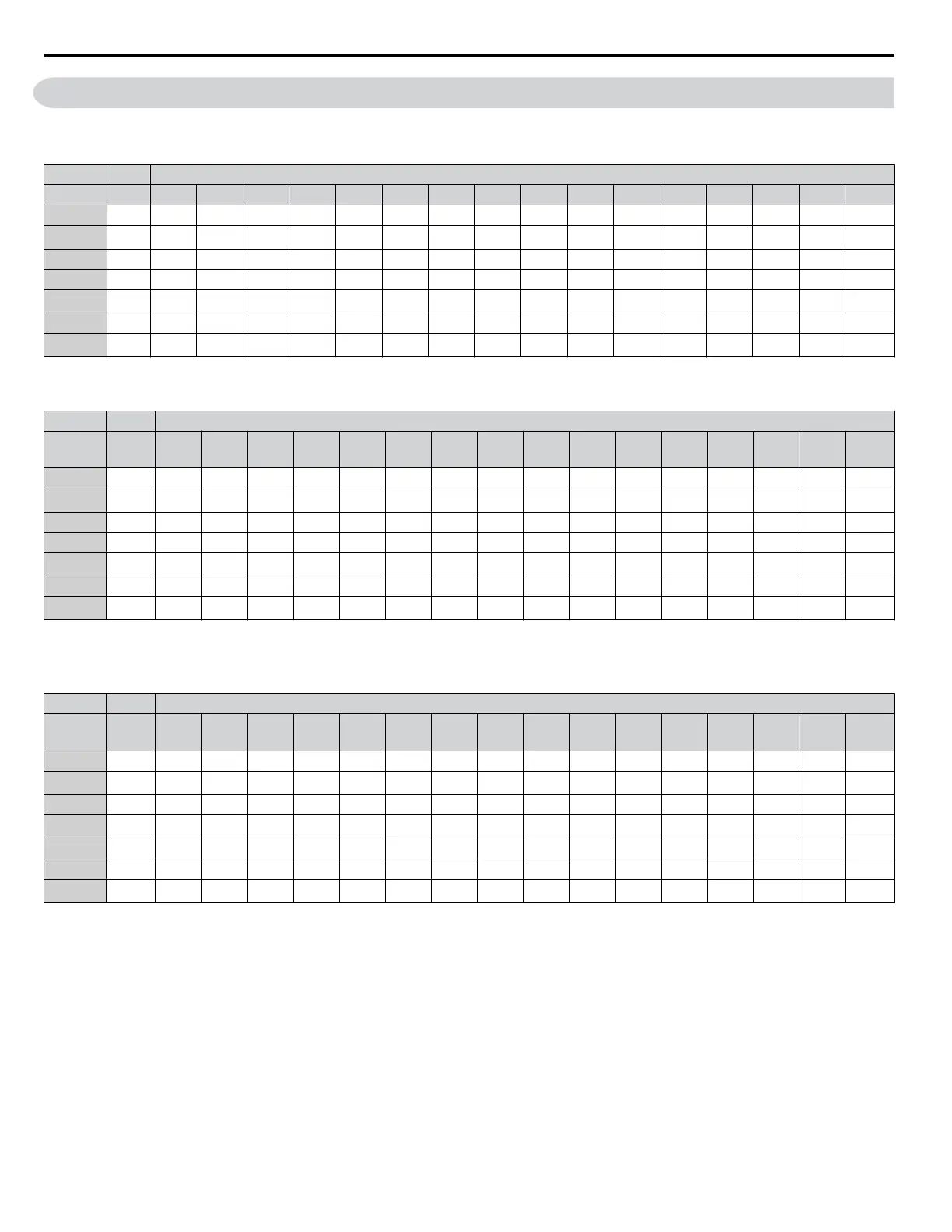 The following tables show the V/f pattern setting default values depending on the V/f pattern selection (E1-03).