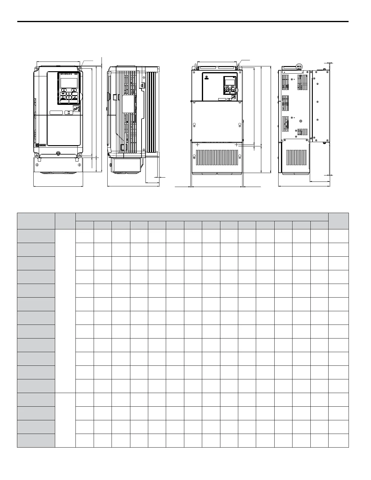 Table 2.5 Dimensions for IP20/NEMA 1, UL Type 1 Enclosure: 200 V Class