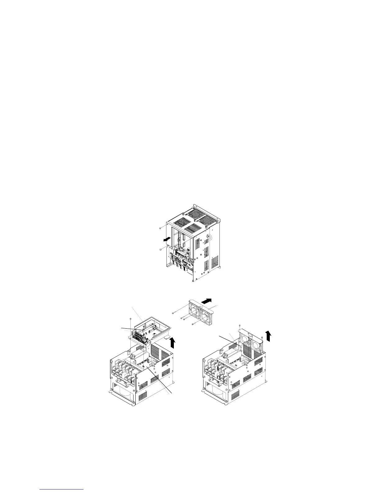5. Remove the fan assembly screws and pull out the fan assembly from the Drive.