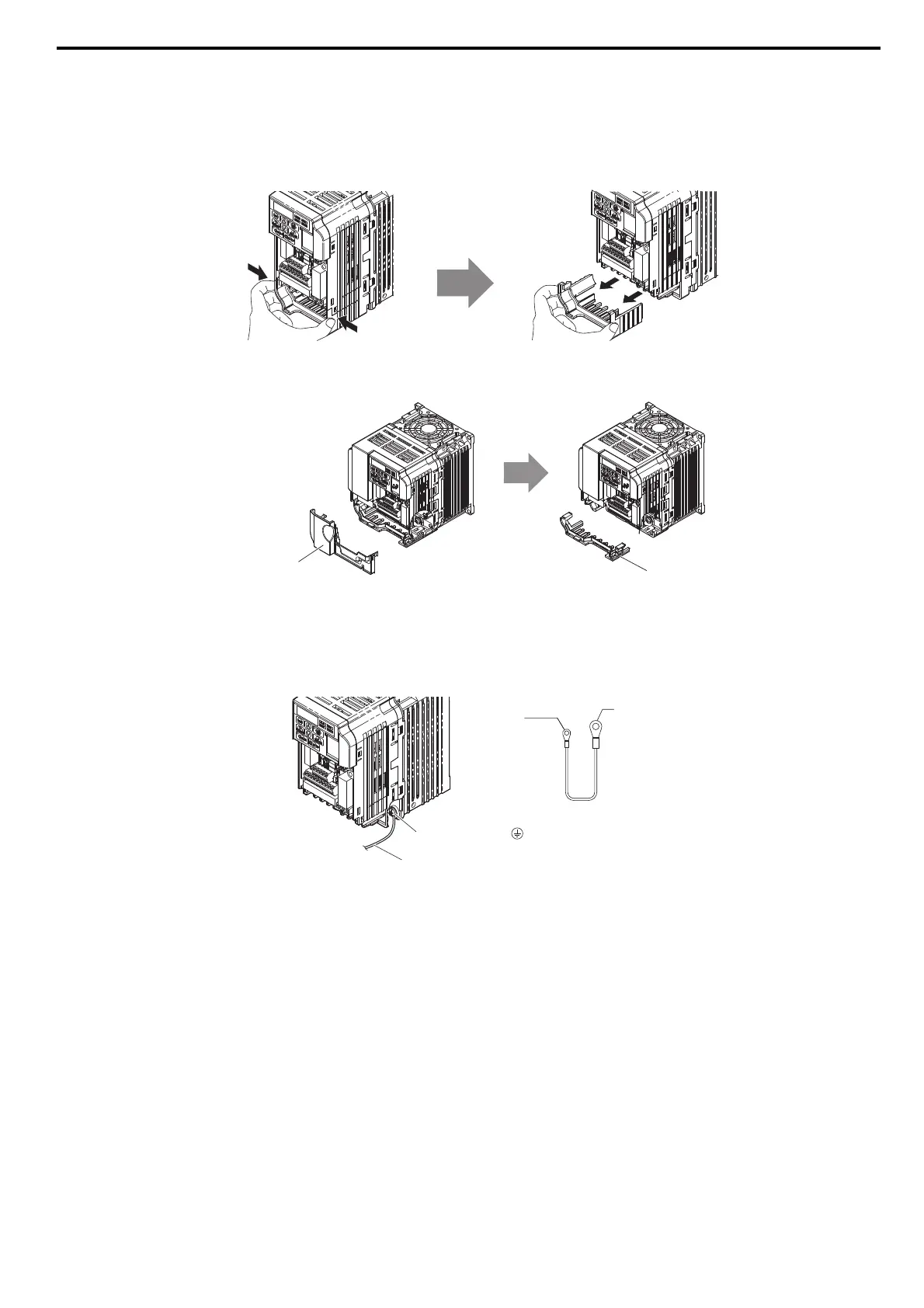 3. For IP20/Open-Chassis models CIMR-VAB, remove the bottom cover of the drive by applying