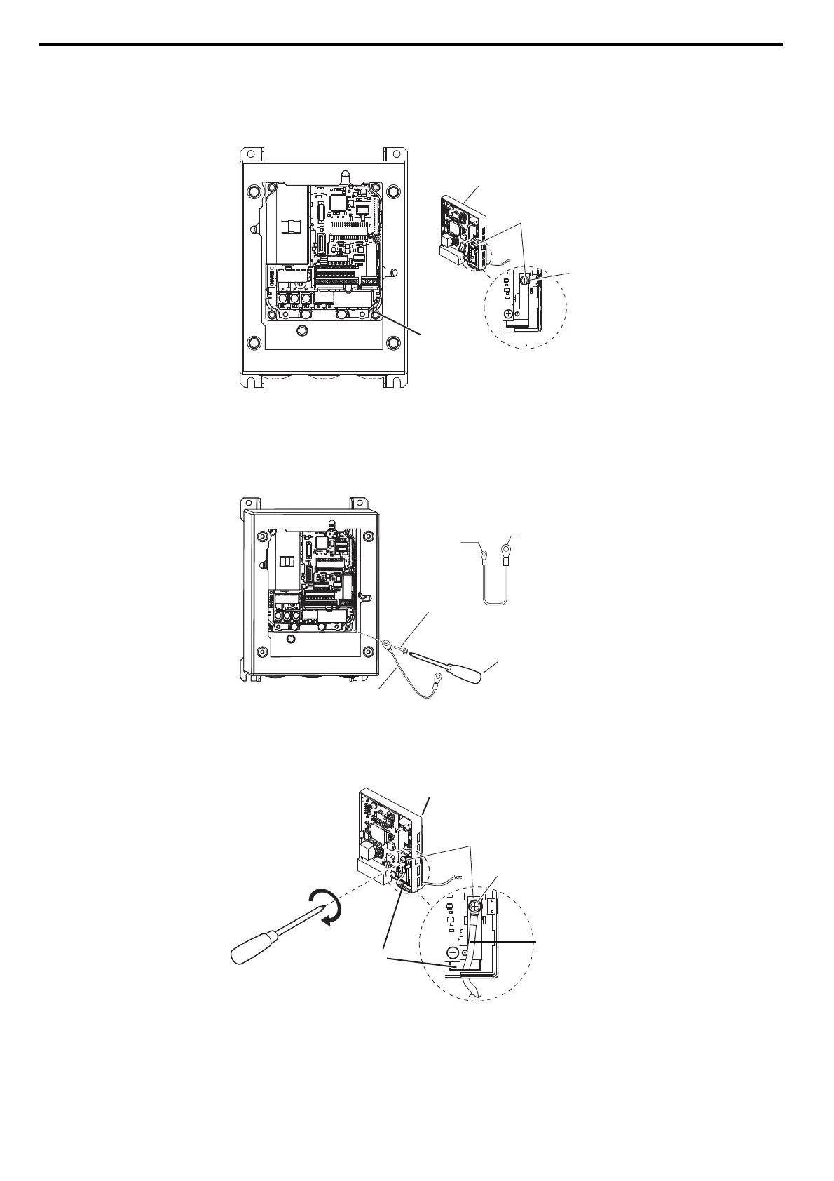 Note: The screw for the drive ground terminal also acts as one of the screws that attaches the waterproof/dust-proof enclosure to the