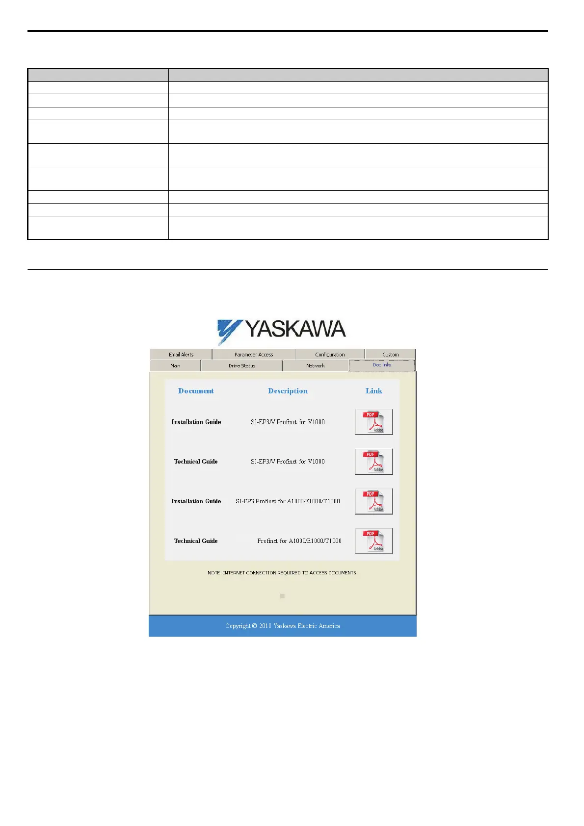The Doc links tab contains links to the option documentation on the Yaskawa website.