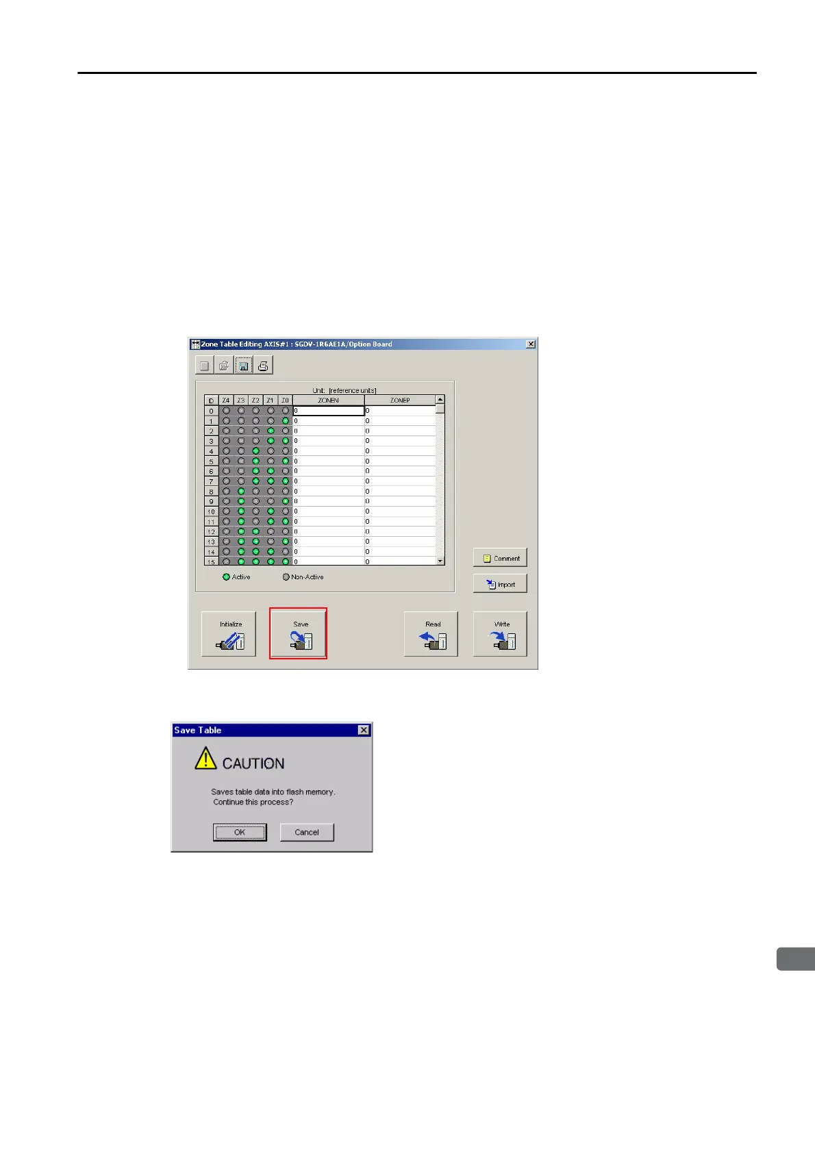 turned OFF, you must save it to flash memory in the SERVOPACK. The ZONE table that is