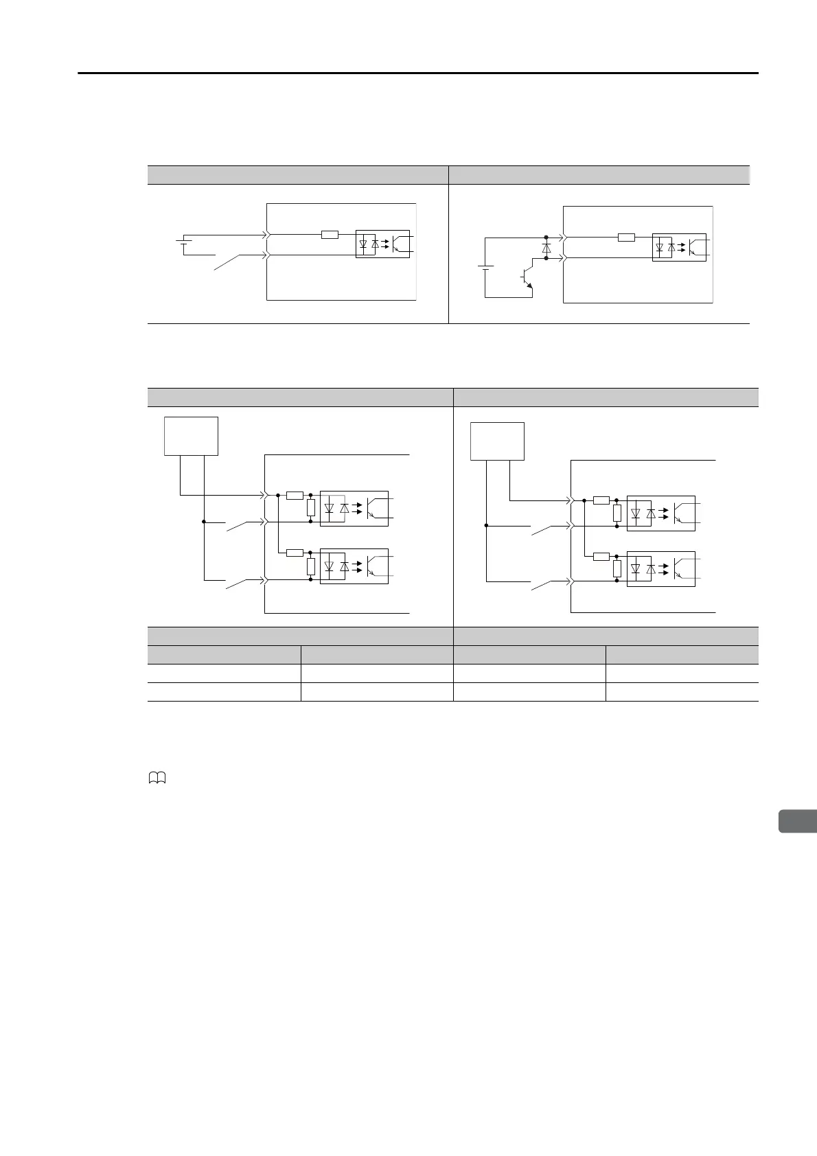 The SERVOPACK input circuits use bidirectional photocouplers. Select either a sink circuit or