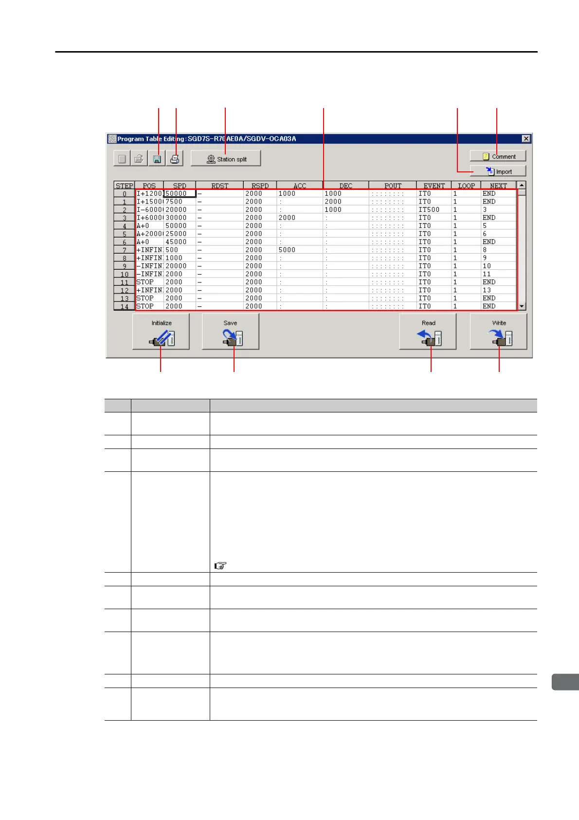 Read Button Reads the program table in RAM in the SERVOPACK to the SigmaWin+.