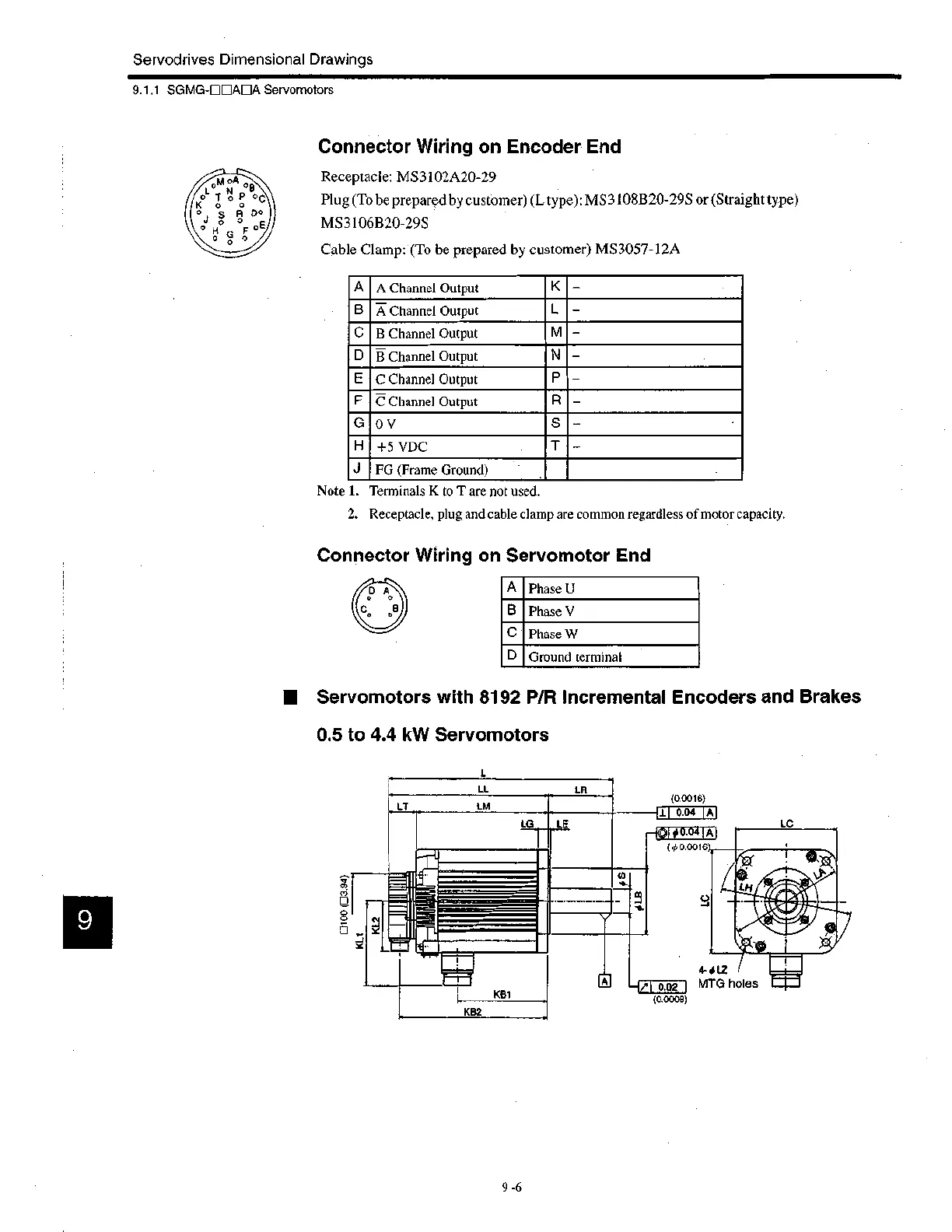 ■ Servomotors with 8192 P/R Incremental Encoders and Brakes