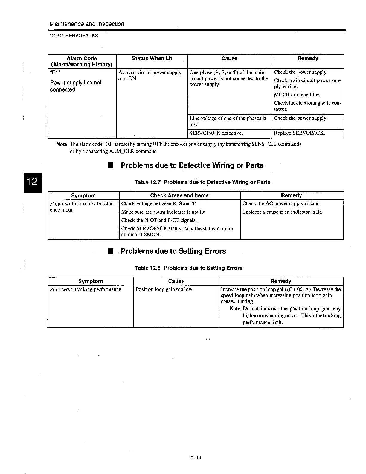 Note The alarm code "00" is reset by turning OFF the encoder power supply (by transferring SENS_OFF command)