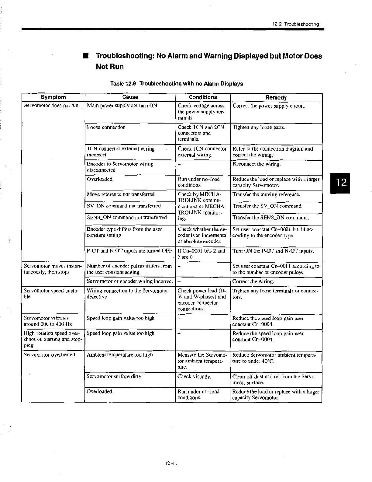 ■ Troubleshooting: No Alarm and Warning Displayed but Motor Does