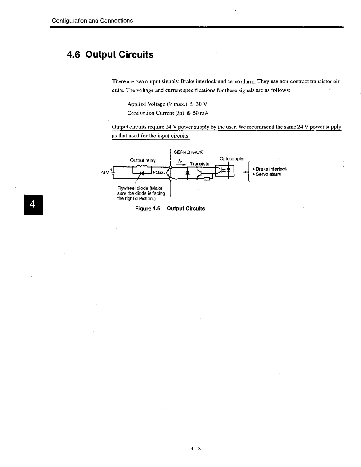 There are two output signals: Brake interlock and servo alarm. They use non-contract transistor cir-