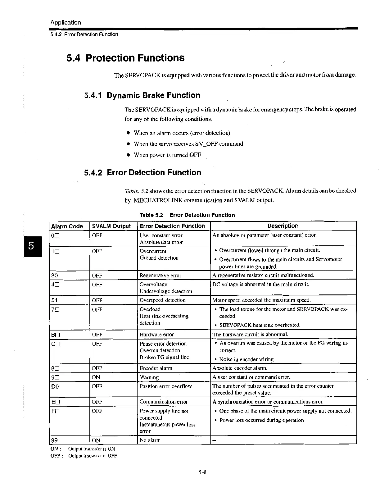 Tabl e . 5.2 shows the error detection function in the SERVOPACK. Alarm details can be checked