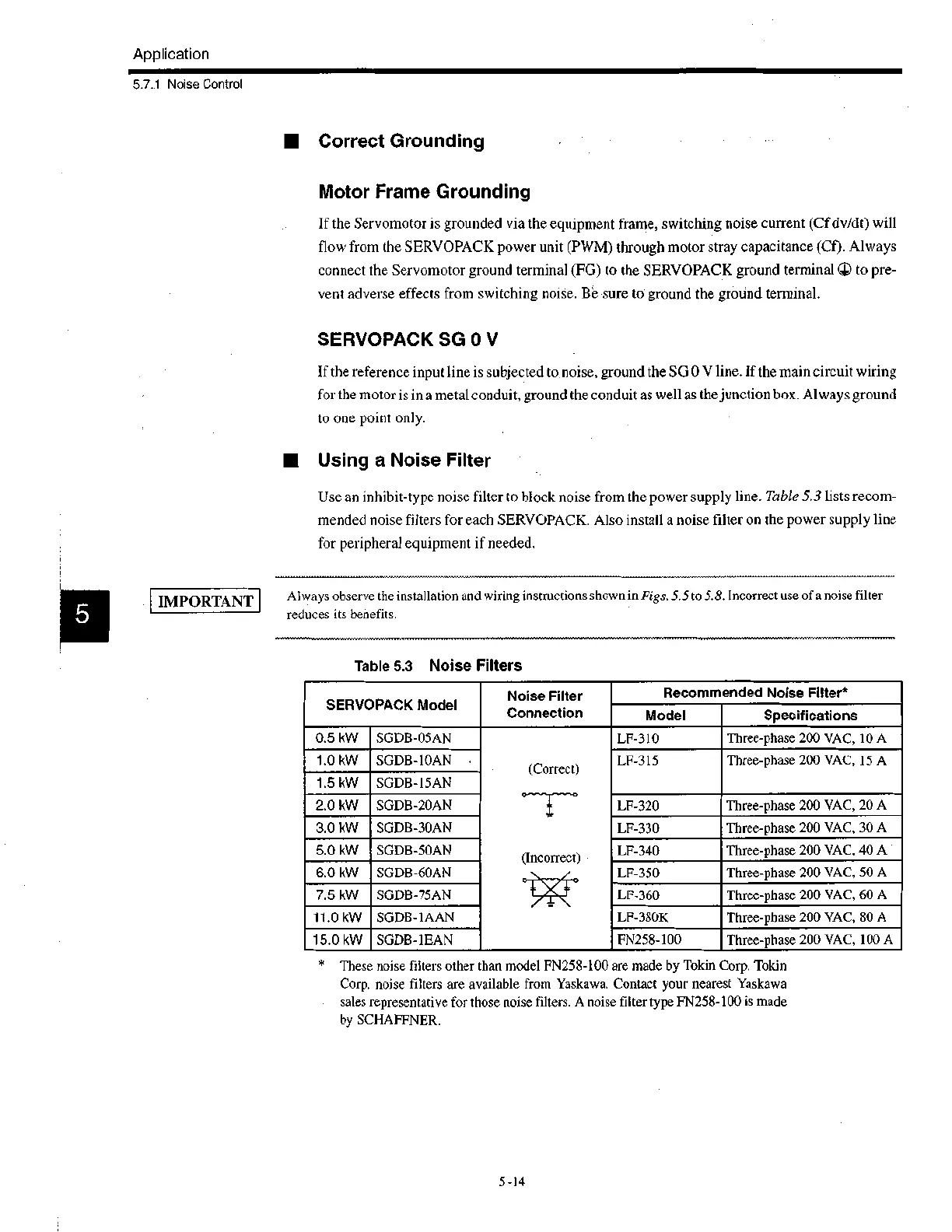 Corp. noise filters are available from Yaskawa. Contact your nearest Yaskawa
