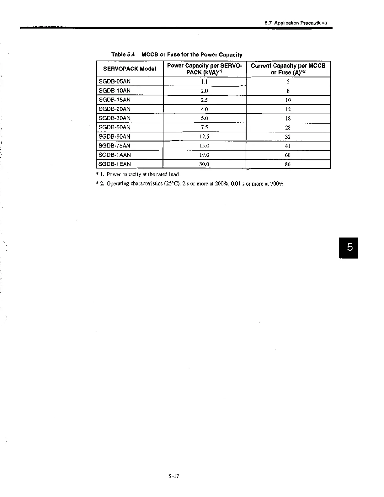 Table 5.4 MCCB or Fuse for the Power Capacity