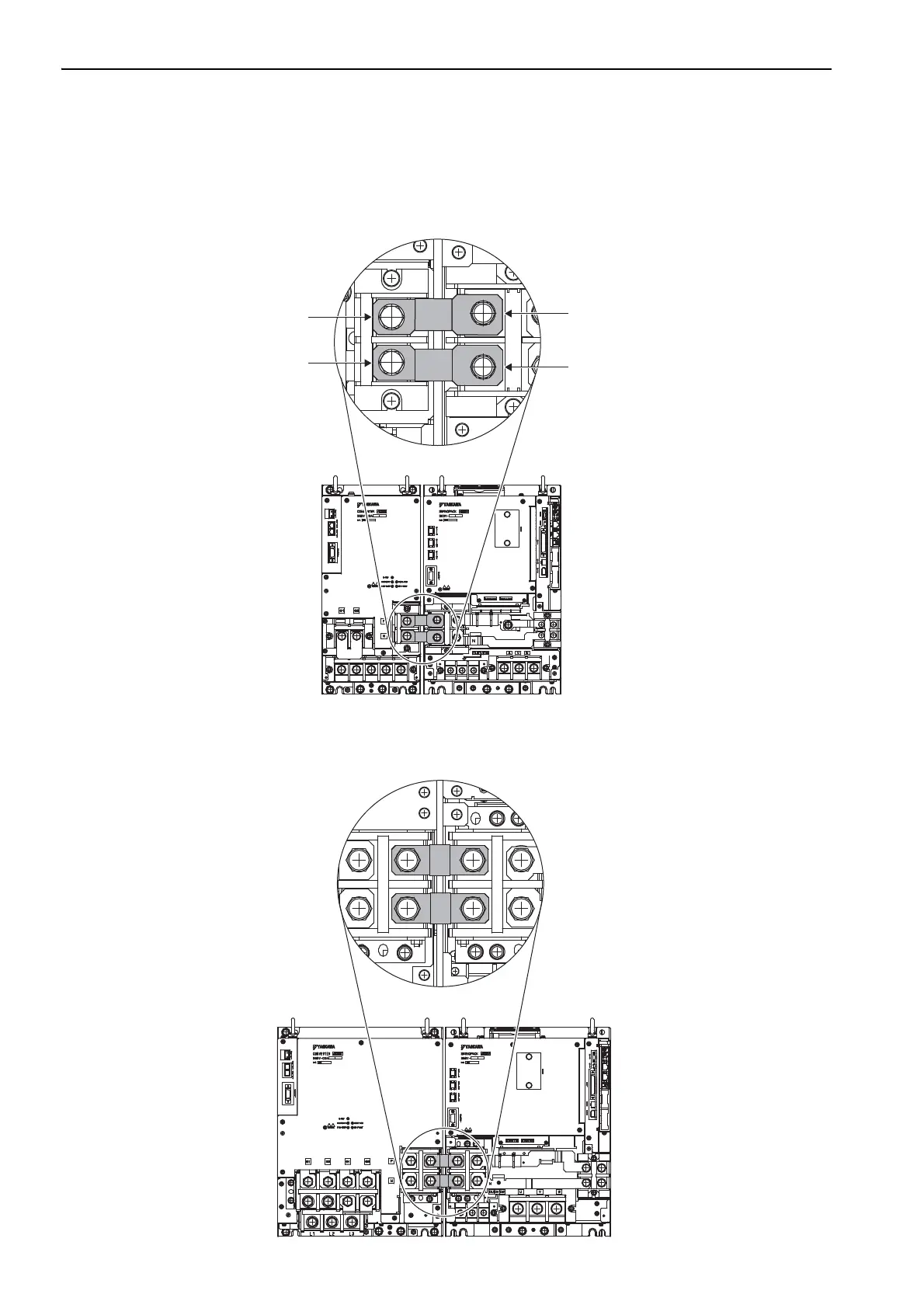 Note: The shapes of the ends of the busbars are different for the SERVOPACK and converter connections and for the P ter-