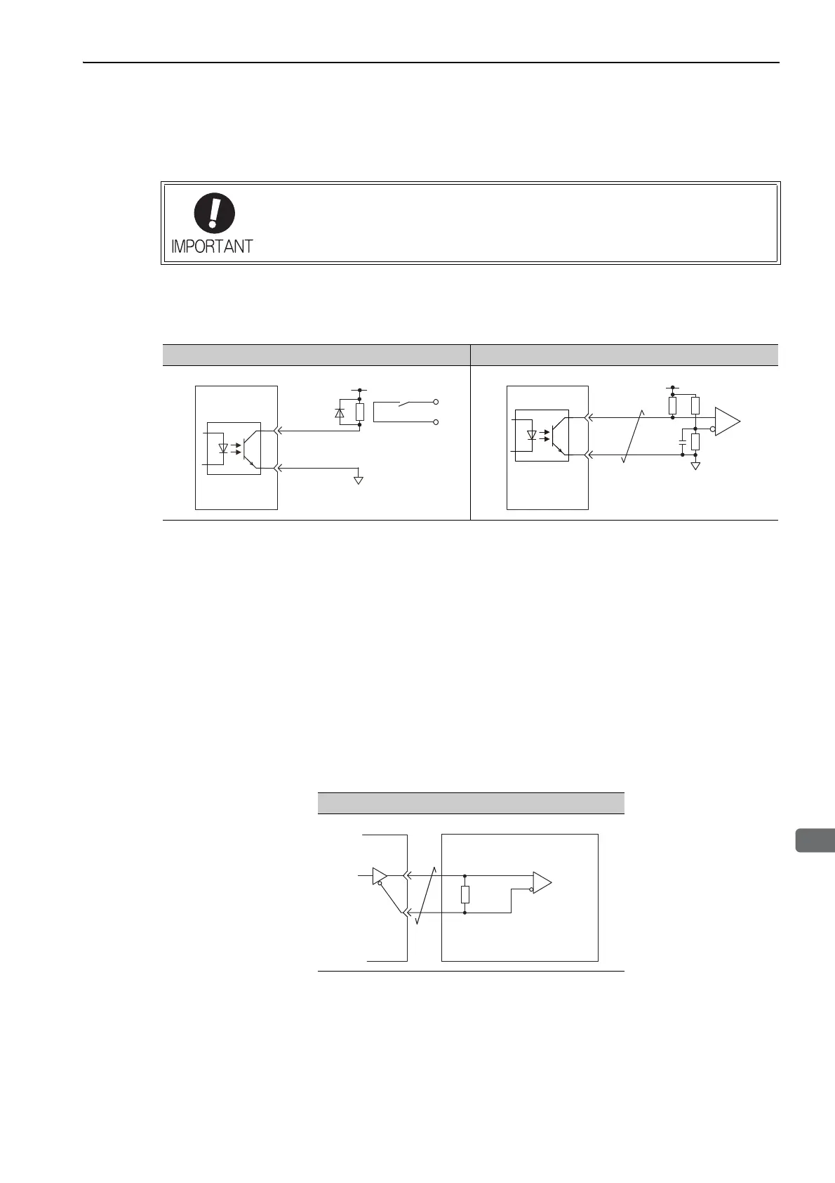 put signal circuits. Connect a photocoupler output circuit through a relay or line receiver circuit.