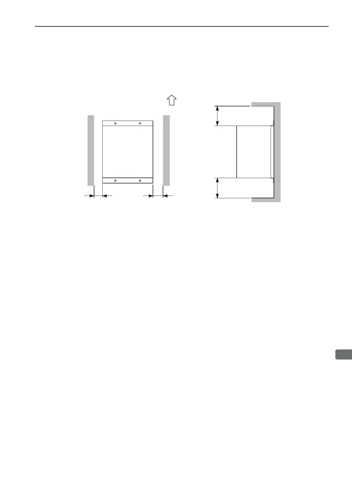 Provide at least 70 mm on each side of the unit and at least 200 mm at both the top and bottom of the unit to