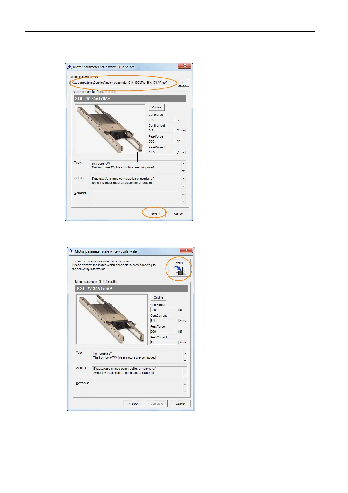 Click the Cancel Button to cancel writing the motor parameters to the linear encoder. The Main Win-